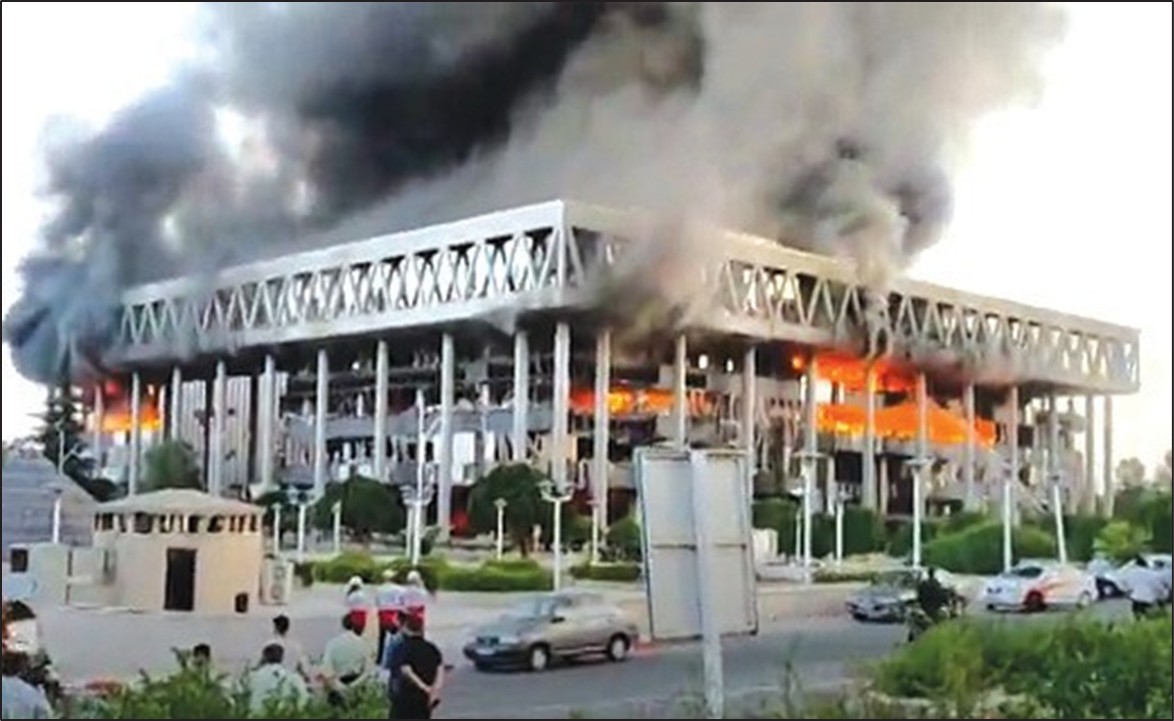 bombs on the headquarters of state broadcasting,